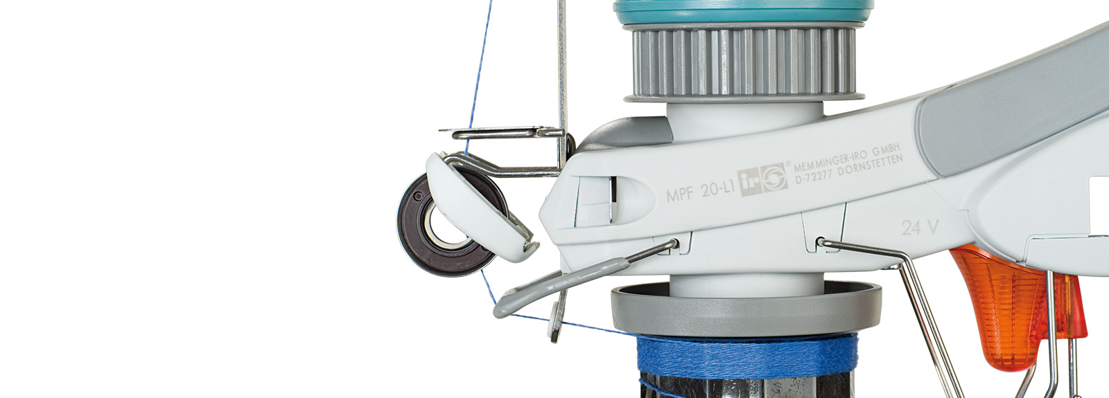 MPF L - 积极式储纱送纱器的入纱张力装置有自洁作用的磁性张力碟和一体成型的抗磨损储纱送纱轮为其特色。 其他特点包含内置防残丝装置和出纱张力可低到1 cN(厘牛顿)的出纱结构。