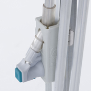 精灵纱架环型结构是精灵纱架与风扇除絮机VCL 5带5马达的组合。纱线通过风管避免棉绒的堆积。90°弯头设计用来降低纱线转折时接触点的阻力。此特点在于防止从纱筒到喂纱口之间的纱道张力的增加。塑料或铝质的伸缩风管可供选用。